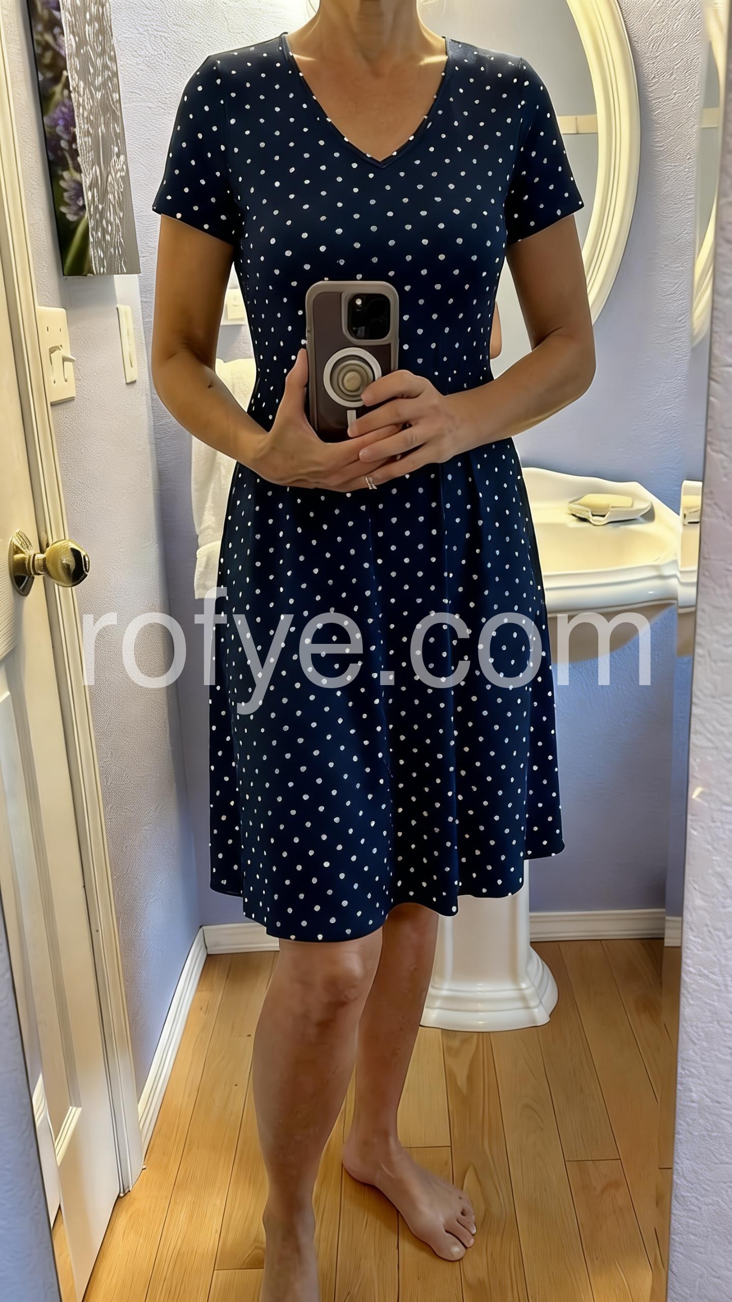 This dress is everything! It is super lightweight and breezy, perfect for hot weather. The V-neck is really elegant and the dark blue is gorgeous.
