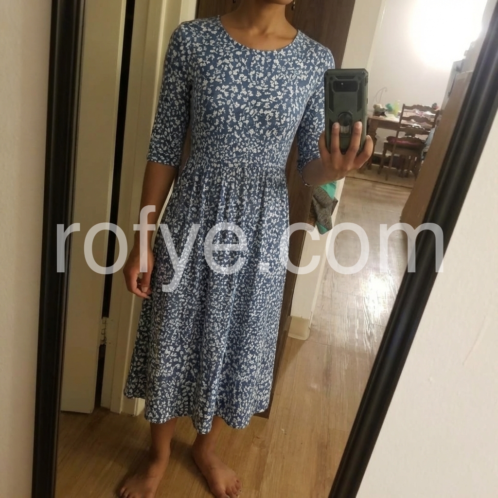 This dress was designed to be your go-to for effortless, everyday elegance. The subtle blue floral print is timeless, while the flowy A-line silhouette flatters every body type.