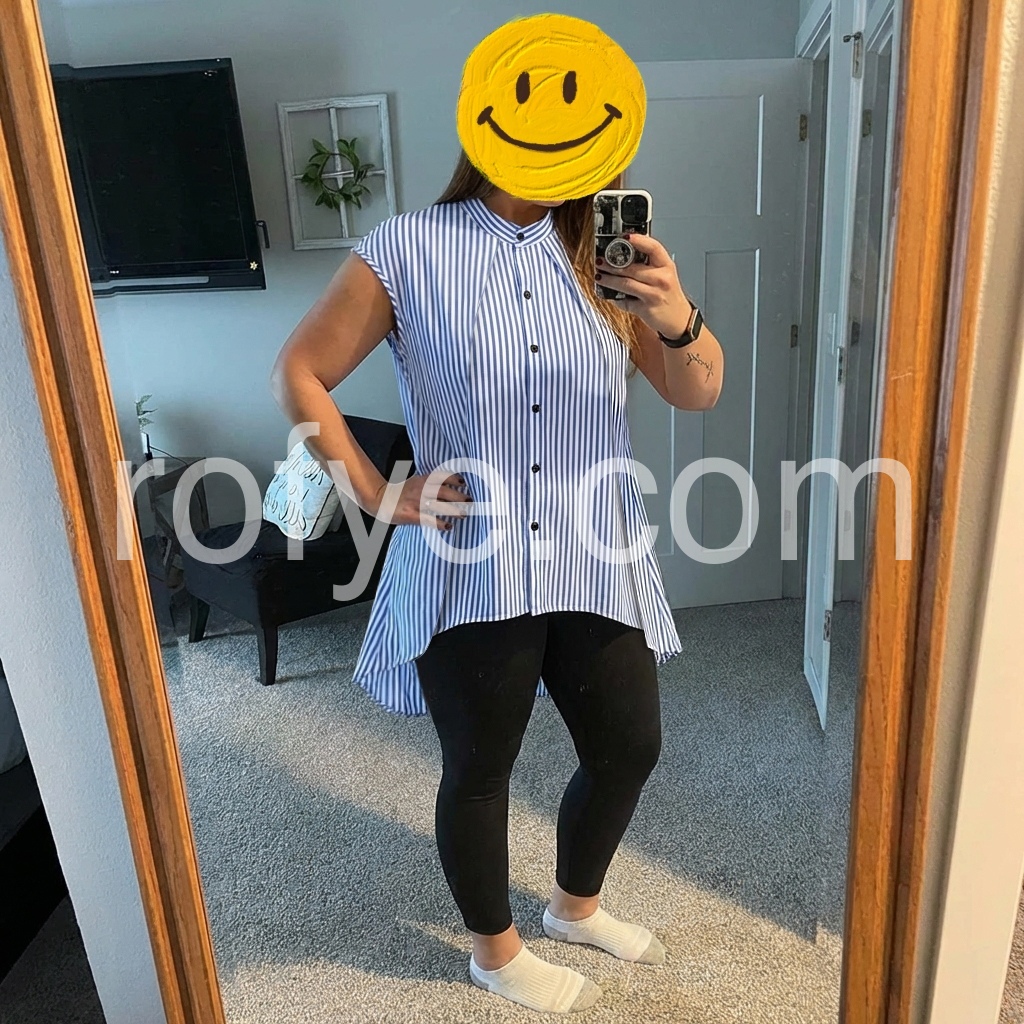 Designed to fix the "boring office top" pain point, this blouse features a chic stand collar and asymmetric hem for modern flair. The vertical stripes slim the torso, while the flowy fabric hides belly bulge.