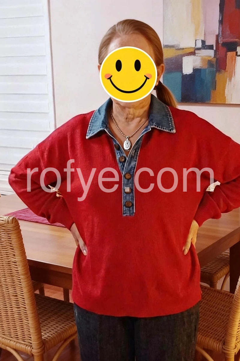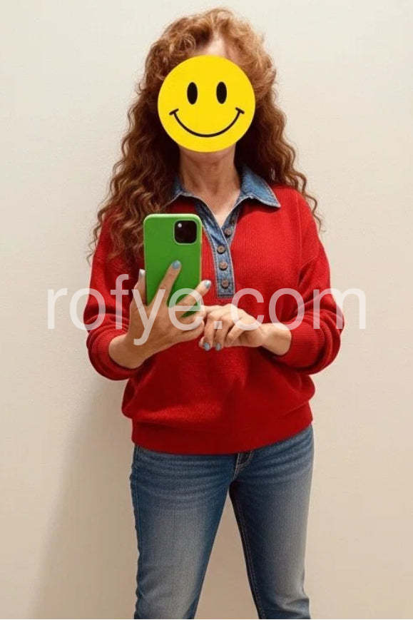 Make a bold statement with this striking red denim collar long sleeve top. The contrasting denim collar adds architectural interest and dimension to the classic silhouette, while the extended sleeves provide versatile layering options. Crafted with attention to detail, this piece transitions seamlessly from casual weekday wear to elevated weekend styling. The vibrant red hue commands attention without sacrificing wearability, making it an essential addition to any modern wardrobe. Perfect for those who appreciate thoughtful design and quality construction.