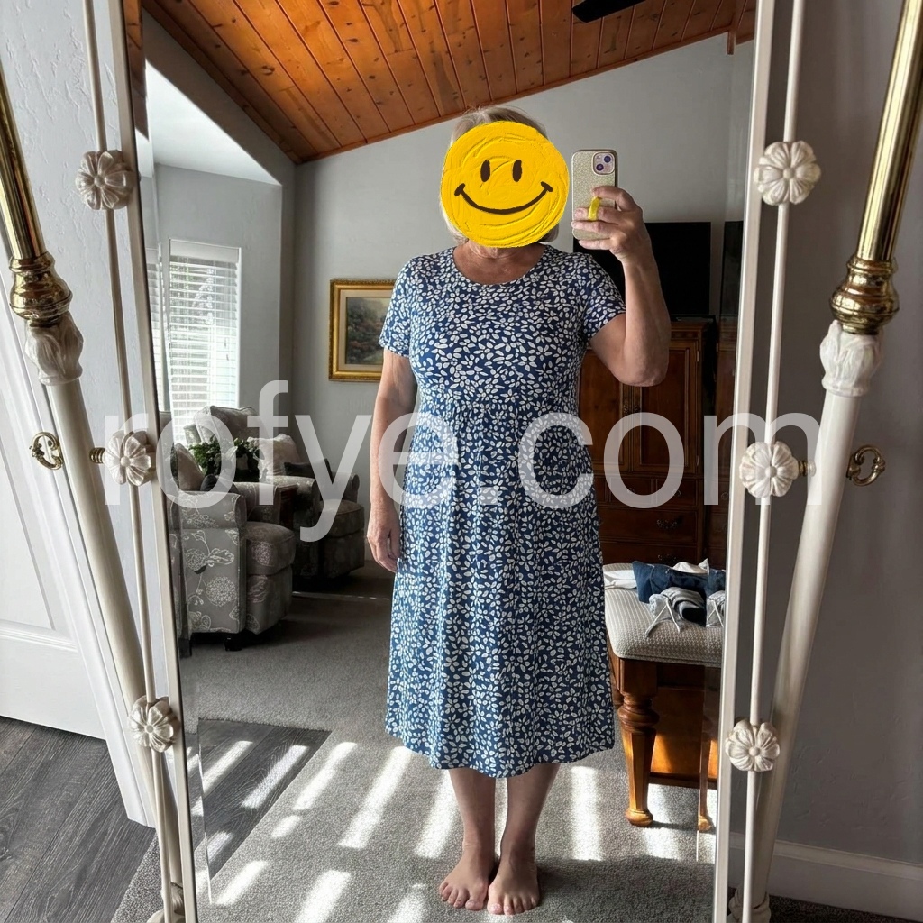 The round neck and short sleeves are universally flattering, and the lightweight fabric stays crisp all day. The gathered waist detail creates shape without feeling restrictive, solving the common problem of “shapeless casual dresses.”