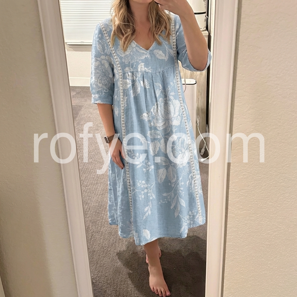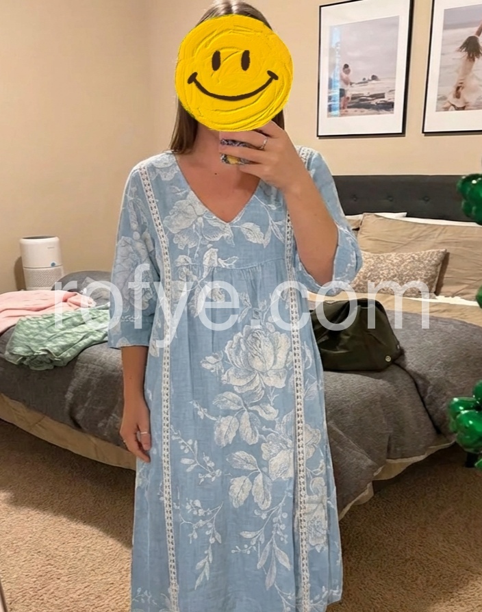 This casual midi dress features a flattering V-neck and loose A-line silhouette, offering all-day comfort and a relaxed fit. Crafted from breathable, linen-like fabric, it’s perfect for warm weather and everyday wear.