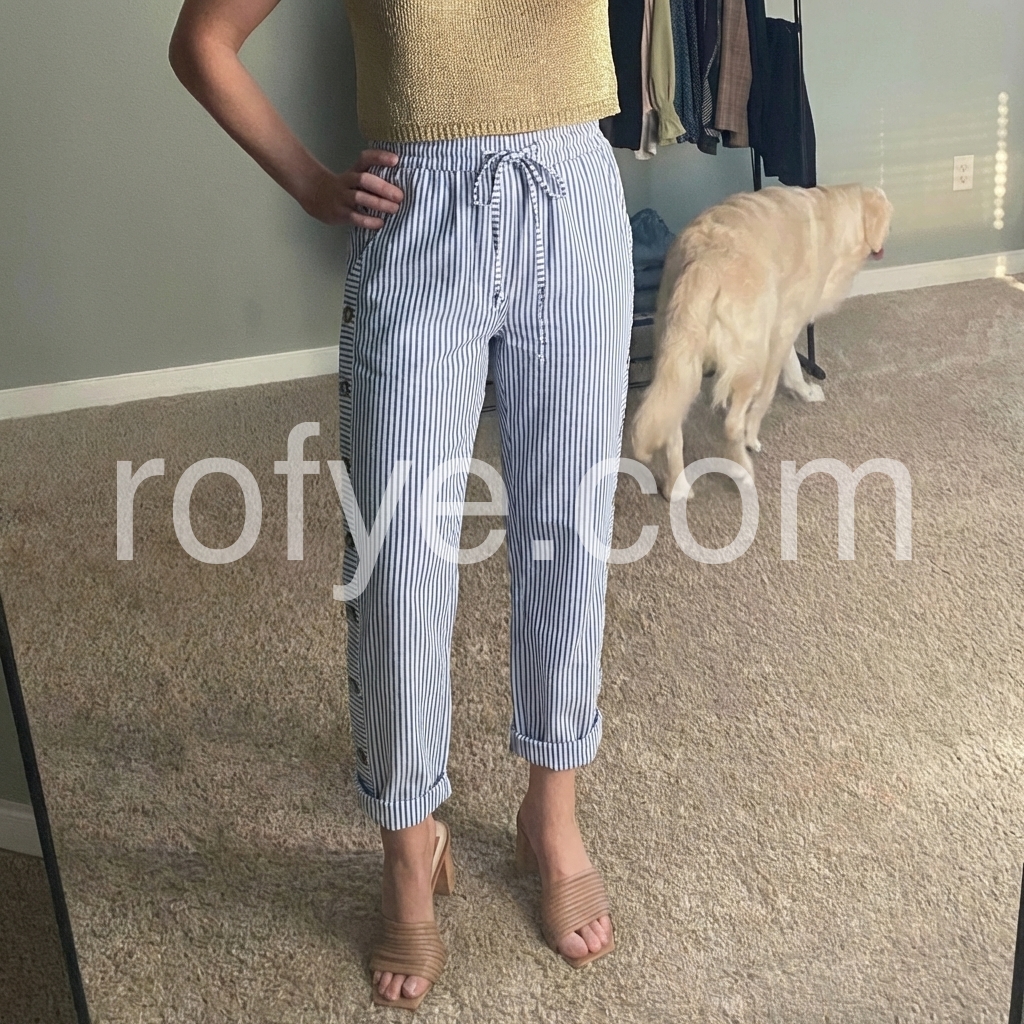 Striped Side Button Cropped Casual Pants