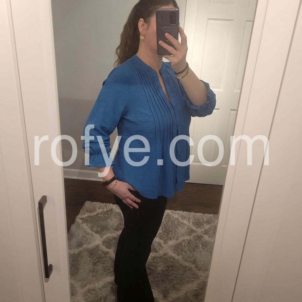 Discover timeless sophistication in this Deep Blue Pleated Button Down Blouse, a beautifully designed top that combines comfort, structure, and feminine flair. Crafted from lightweight, breathable fabric—likely a cotton or linen blend—this long-sleeve blouse features a rich sapphire blue hue that exudes confidence and style. The front is adorned with vertical pleats that add dimension and elegance, while the deep V-neckline offers a flattering touch of allure. A row of matching buttons runs down the center, enhancing the clean, tailored look. The sleeves are finished with gathered cuffs that create a soft ruffle effect when rolled up, adding subtle charm to the silhouette. The peplum hem gently flares out, creating a balanced, hourglass-inspired shape that pairs perfectly with high-waisted pants, skirts, or jeans. Ideal for casual outings, office wear, or weekend brunches, this blouse effortlessly transitions from day to night. Inspired by the curated, minimalist-chic styles found on Lulus.com, it’s a versatile wardrobe essential that brings effortless elegance to any ensemble. A must-have for those who love refined details and classic fashion with a modern twist.