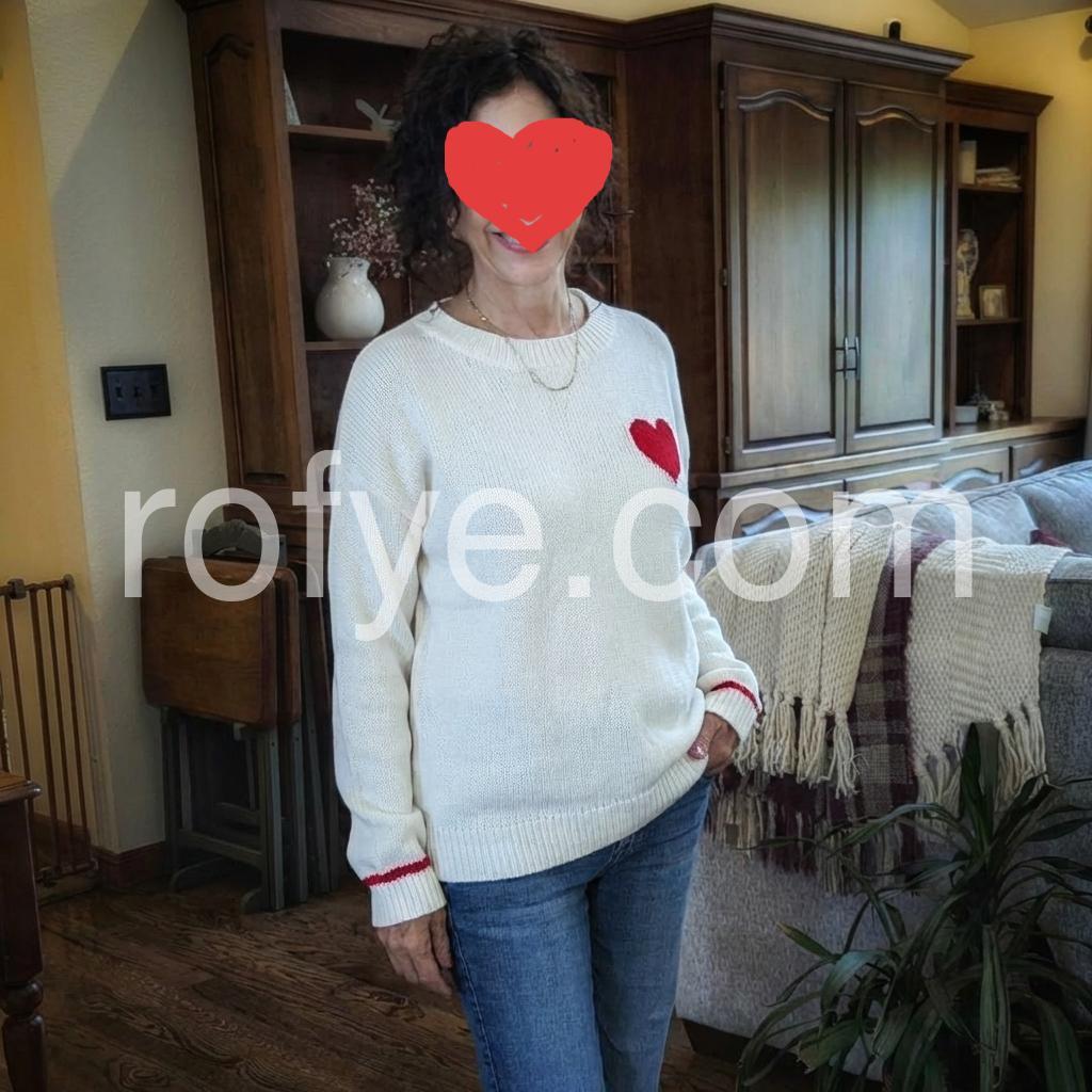 Add love to your everyday style with this chic white sweater. A bright red heart on one side gives it a look of pure romance for anyone and any time, perfect for wearing anywhere. The round collar, cozy long sleeves, and loose fit make it easy to layer, mix and match with jeans and your favorite lightweight jewelry.